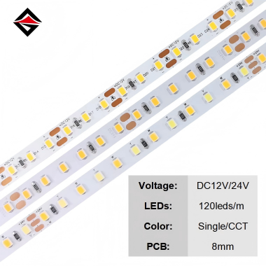 (२) शक्ति:आमतौर पर, 24V लाइट स्ट्रिप में अधिक शक्ति होती है क्योंकि उच्च वोल्टेज अधिक एलईडी लाइट मोतियों को चला सकते हैं।